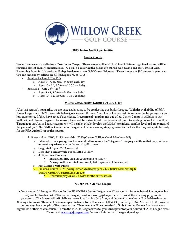 Lessons Willow Creek Golf Course Events In Rochester Minnesota