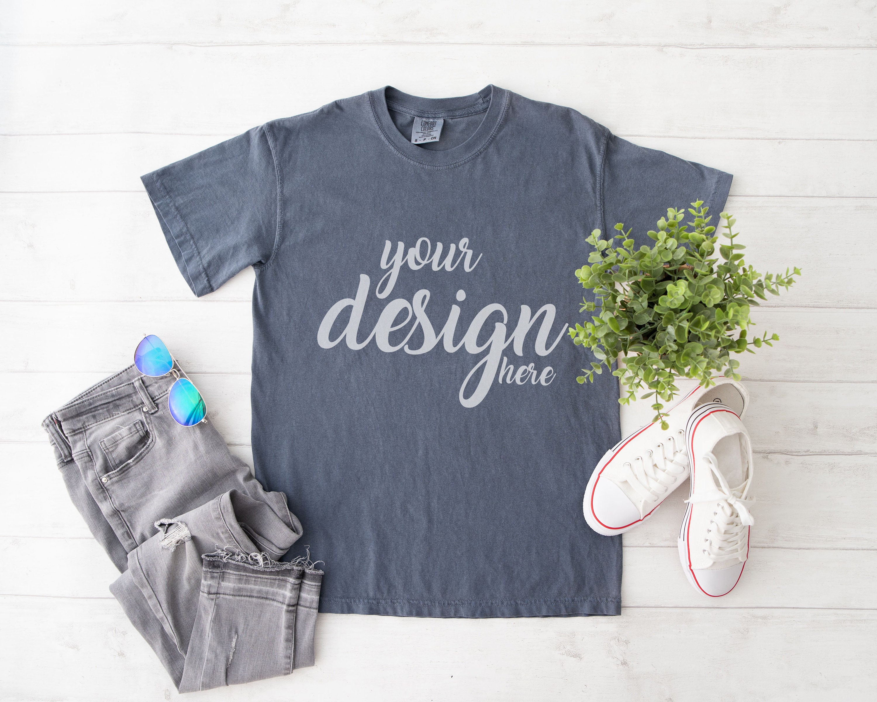 Comfort Colors 1717 Washed Denim Heavyweight Erwachsene T Shirt Damen T Shirt Mockup Etsy De